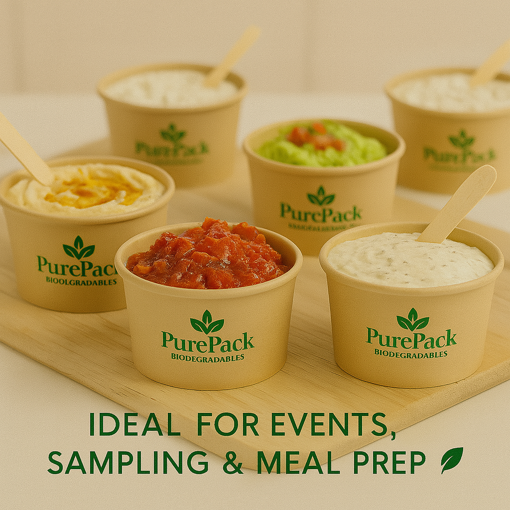 Say goodbye to plastic tubs and soggy lids – the 100ml PurePack Dip & Sauce Cups are here to tidy up your takeaway game the Aussie way. Whether you’re dishing out tomato sauce for meat pies, aioli for chips, gravy on the side, or a little sweet custard or chia pudding, these nifty little kraft cups keep things neat, heat-safe, and naturally guilt-free.